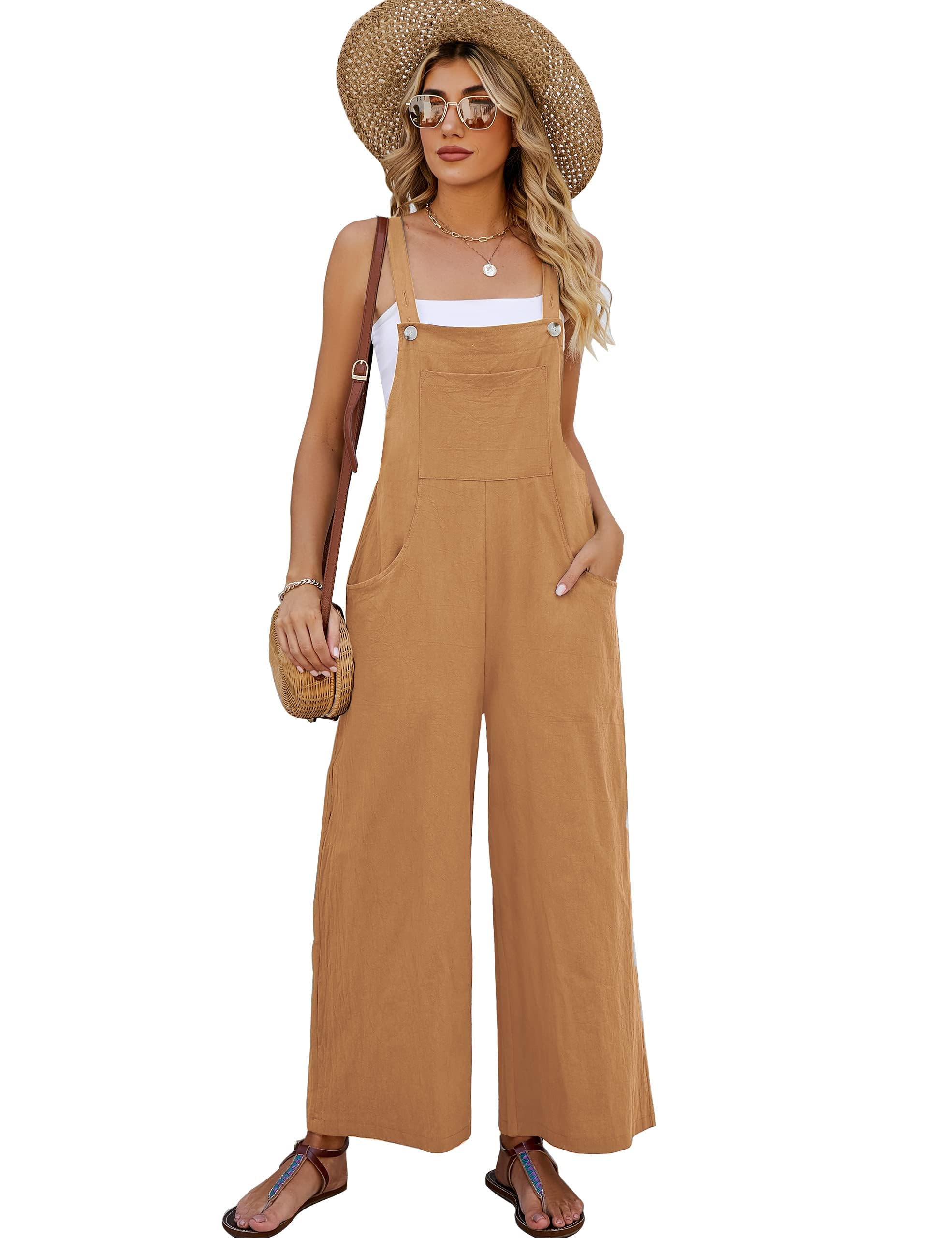 Women's Cotton Bib Overalls Loose Fit Wide Leg Jumpsuits Cas...