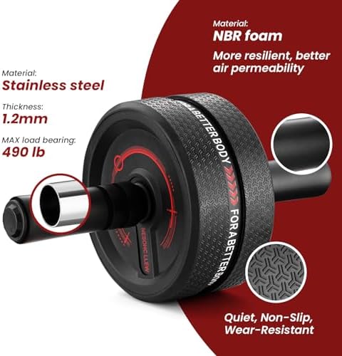 Upgraded Ab Roller Wheel. Abdominal Training Roller for Men/Women, Abdominal Wheels Widened to 3.4 ", Rubber Tread of The Abdominal Wheel Upgraded, Max Weight 490 lbs