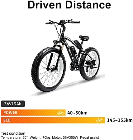 - 36V 13Ah Capacity: The upgraded 36V 13Ah Battery for Electric Bicycle is branded, which is more durable and has a longer cycling life than ordinary batteries. The single-charge range can reach 40-145 kilometers with pas sensor (depend on riding conditions, road conditions, rider weight, etc.). It takes about 7 hours to fully charge the battery.