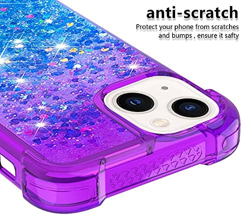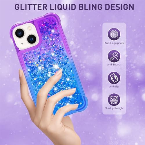 Glitter Case for iPhone 14/iPhone 13 with Screen Protector, Cute Bling Sparkly Liquid Women Girls Girly Slim Silicone Soft TPU Shockproof Protective Phone Cover for iPhone 13/14 -Blue Purple