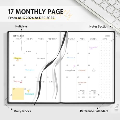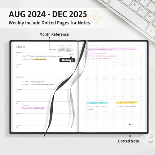 • 2024-2025 PROFESSIONAL PLANNER - Flexible Soft Faux Leather Cover Planner from August 2024 to December 2025, Features 17 months of monthly and weekly pages for all your planning and scheduling needs, and measures 5.5" x 8.3". SUNEE planner features a simplified layout for ease of use, offering spacious writing space to plan your schedule freely.