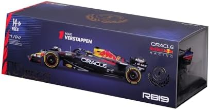 The Bburago 1:24 2023 Race Oracle RB19 with Helmet, Verstappen #1, is a finely detailed diecast model celebrating Max Verstappen’s championship-winning Formula 1 car. It features authentic Red Bull Racing livery, a driver helmet, and precision detailing perfect for F1 collectors and fans.
