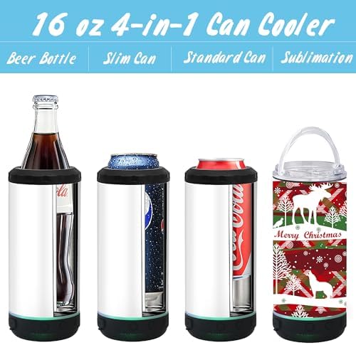 - 【4 in 1 Versatility Design】: 16 oz sublimation music bluetooth tumbler cup can cooler fits 12 oz and 16 oz cans and bottles, that can hold standard cans, slim cans, beer bottles. Keep your drinks refreshingly chilled for over 12 hours. Includes two different sets of lids to transform from a can cooler to a sublimation cup, so it can also be used as a drinking cup for coffee,tea,and any mixed drinks.