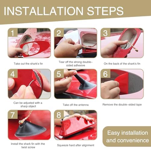 • Pasting Using: The packaging accessories come with strong double-sided tape, no need to drill holes, stick it to the back of the shark fin antenna. Detach the original car antenna, tear off the double-sided tape, install the shark fin, tighten the screws, and press firmly after alignment.