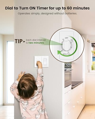SURAIELEC 60-Minute Countdown Timer Switch for Lights, in-Wall Mechanical Timer Switch for Exhaust Fan, Programming-Free Light Timer, No Neutral Required, ETL Listed
