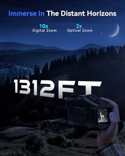 - Capture Every Detail: Embrace the wonders of the dark as you zoom into the unseen world. Our night vision monocular, equipped with 10x digital and 2x optical zoom, transforms distant shadows into clear, observable scenes. Whether it's observing nocturnal wildlife or securing your surroundings, experience an extended viewing range up to 1312FT, bringing the night closer to you.