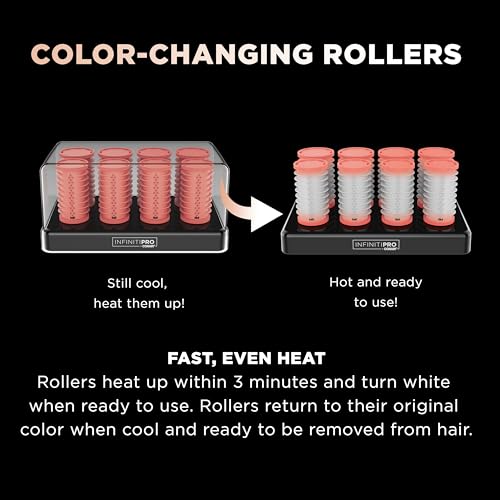INFINITIPRO BY CONAIR Color Changing Hot Rollers for Long, Medium, and All Hair - Hair Curler - Hair Roller Clips Included - 1 1/2-inch and 1 1/4-inch Rollers