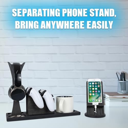 Unique Gift for Gamers, Game Room Decor. Unique Gaming Organizer with Headset Holder, Rotatable Phone Stand & Controller Stand. Wooden Gaming Gadget for Gaming Desktop, Streamer, Teenage Boy