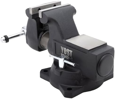 Yost HD450-C Heavy Duty 4-1/2 Inch Mechanics Work Bench Vise | Heavy Duty Woodworking & Metal Work Table with Secure Grip Swivel Base | 60,000 PSI Casting Iron Material with Extra-large Anvil Surface