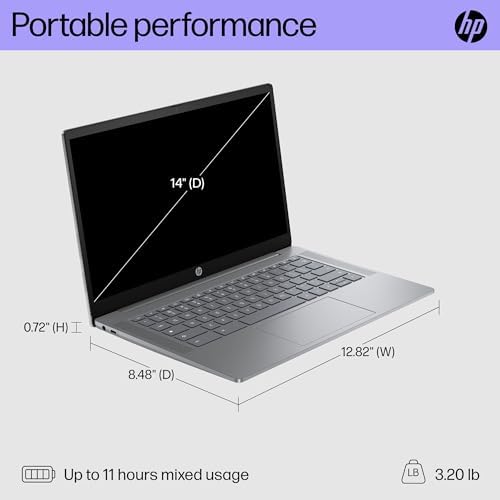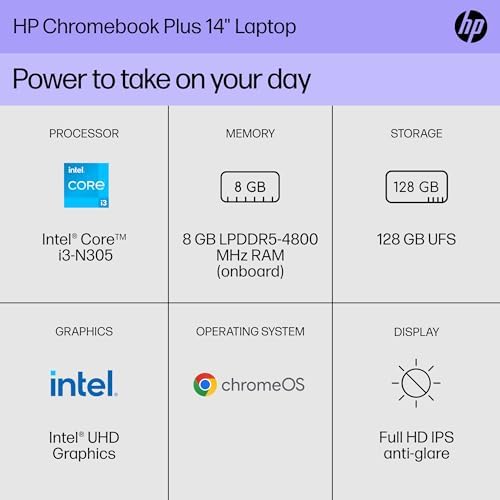 HP Chromebook Plus 14 inch Laptop, FHD Display, Intel Core i3-N305, 8 GB RAM, 128 GB UFS, Intel UHD Graphics, Chrome OS 14a-nf0050nr (2024)