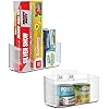 2 Paquete Organizadores de Puerta de Armario Plásticos, Soportes de Envoltura para Organizadores de Cocina, Montaje en Pared sin Perforación para Envoltura de Aluminio, Envoltura Adhesiva y Bolsas de Comida, Transparente