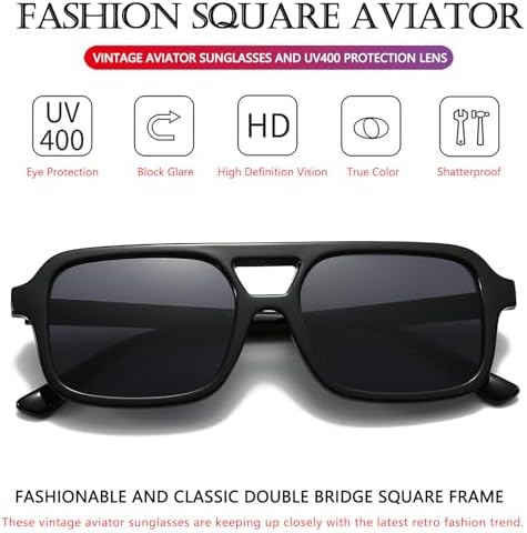 AIEYEZO Retro Square Sunglasses for Women Men Trendy Rectangle Aviator Sun Glasses Vintage 70s Shades (Black/Grey), MM