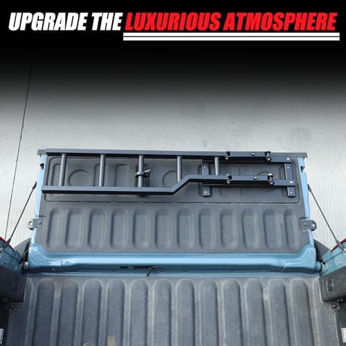 • 【Double fixation】Fixing the shelf supports and original holes when unfolding and using the Extension Step Ladder,Retractable feature allows the pickup ladder rack step to be stowed until needed, Comes with a fixing device that can be firmly fixed on the tailgate, You can open and close the tailgate at will and it won't fall off.