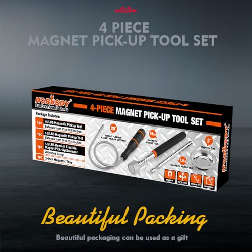 HORUSDY 4-PIECE Telescoping Magnetic Pickup Tools Set - Extendable Magnetic Pick Up Tools,Flexible Bendable Spring Magnet Stick