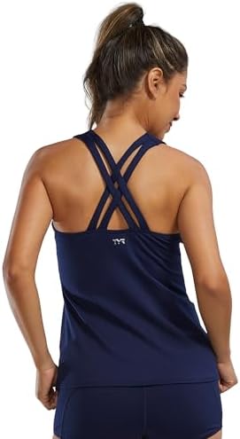 TYR Women's Durafast Elite Square Neck Tankini Swim Top, Navy, 12