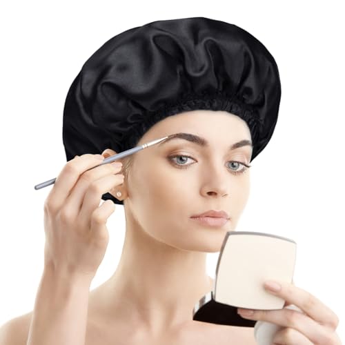 - 2 LAYERS WATERPROOF SHOWER CAPS FOR WOMEN - Our hair bath cap features a silky polyester surface and a waterproof PEVA inner layer - You can use it inside out to make sure a good waterproof function as well as to protect your hair. Our double layers shower cap is a great shower partner to keep your hair dry when you taking shower or bath.