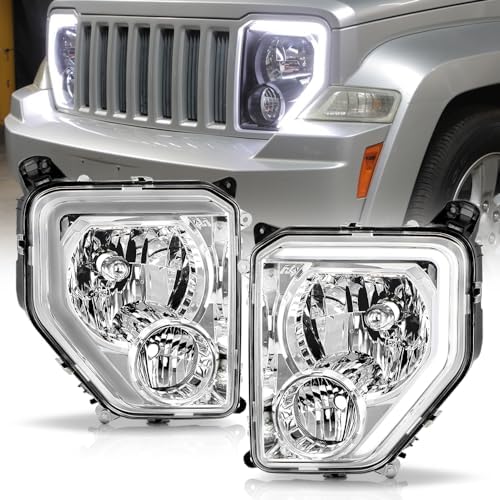 DESIGNED REPLACEMENT FOR2008-2012 Jeep Liberty w/ Fog Lamp Headlight Model[4-Door Sport Utility]OEM Equivalent Part Number: 55157339AE, 55157338AE, CH2502196, CH2503196Attention:[Compatible Headlamp w/ Fog Light Models Only][Not Compatible w/o Fog Light Models]Condition: NewColor: Titanium ClearChrome Housing | Clear LensPackage Include: Driver & Passenger Side (Housing & Lens)PRODUCT FEATUREBullet-Cap LED:Our Lights have Tech-Leading DIP LED's which illuminate up to 10x faster than incandescent bulbs alerting trailing drivers sooner for added safety while bringing a new modern look to your vehicle with brighter, more efficient lightingPlasma-Tube:Our "Plasma-Tubes" offer an Intense Lighting Accent that is DRL compatible, giving your Vehicle a Aggressive Night PresenceLens:Our Polycarbonate Lens offer Superior UV protection and a High Impact ResistanceCondensation and Debris Protection:Our Lights Use the Highest Quality Butyl Sealant to Prevent any Imperfections to Enter the Light Housing