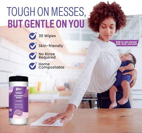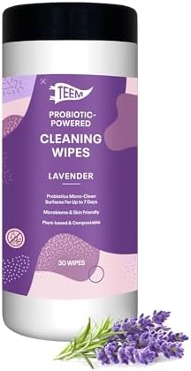 TEEM Probiotic Cleaning Wipes with Lavender Essential Oil, Microcleans Surfaces for up to 7 Days, Home Compostable & Biodegradable, All-Natural Multi Surface Wipes - 30 Count (Pack of 1)