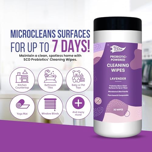 - MICROCLEANS SURFACES - Maintain a clean, spotless home with TEEM kitchen wipes. These household cleaning essentials feature hard-working probiotics and postbiotics that break down the toughest dirt, grime, and foul odors. They survive on surfaces and keep cleaning for up to 7 days!