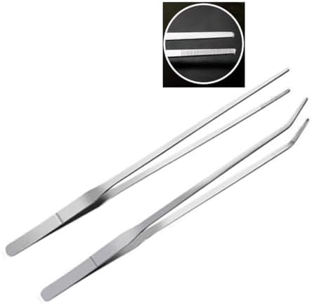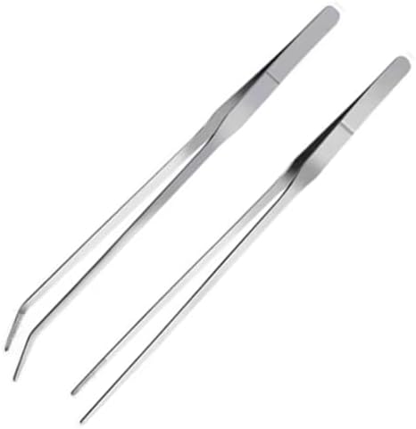 Long Handle Stainless Steel Straight and Curved Tweezers Nippers 2pcs for Garden, Kitchen, Aquarium Fish Tank, Indoors and Outdoors