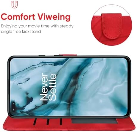 Case for Oneplus Nord Case,Oneplus Nord 5G AC2001 AC2003 Wallet Case with Tempered Glass Screen Protector, Skin Feel Leather Flip Credit Card Holder Stand Phone Cover for Oneplus Nord 5G Red