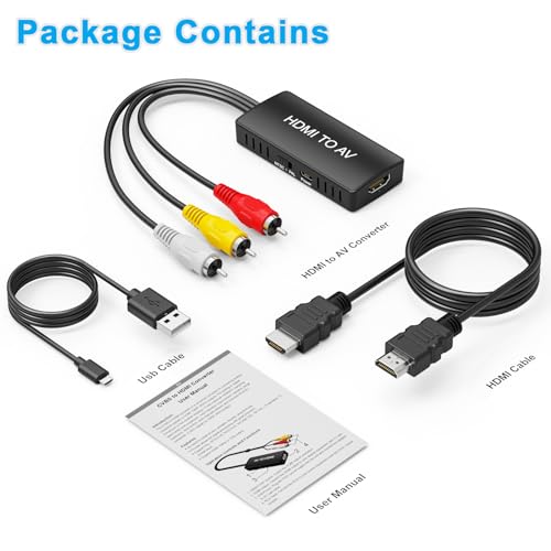 HDMI to RCA Converter, HDMI to AV 3RCA CVBs Composite Video Audio Converter Adapter for Old TV Compatible PAL/NTSC for Roku, Android TV Box, DVD ect