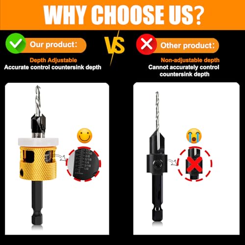 - ADJUSTABLE DEPTH CONTROL: Elevate your woodworking game with the BURTOK Depth Adjustable Countersink Drill Bit. Ideal for wood, plastic, and counterbore, adjust depths effortlessly with a wrench for flawless results.