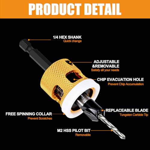 - VERSATILE MATERIAL COMPATIBILITY: This counter sink drill bit is your go-to for flawless cuts through MDF, plywood, chipboard, and drywall. Just a heads-up, it's not your metal-worker. Perfect for nailing down quality and accuracy in your woodworking gigs—your toolkit's new best friend!