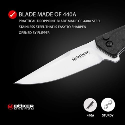 - HIGH QUALITY - the 1-hand knife is opened with one hand using a flipper & locked with a button lock. The extra sharp 440A blade & robust handle give the outdoor folding knife durability. Perfect for your adventures in the wilderness