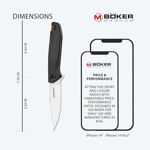 Böker MAGNUM® Border Forst Folder Pocket Knife - Outdoor - buttonlock - Folding Flipper Knife Micarta handle black - sharp Spearpoint blade - EDC knife with clip