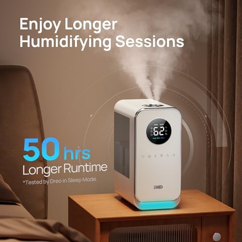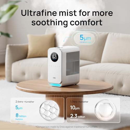 • Supersized Mist: Dreo's Dual-intake and 360° dual mist outlet design, enables you direct mist into multiple directions, Dreo humidifiers for home bring fast dryness relief and release more uniform and comfortable air to breathe better.