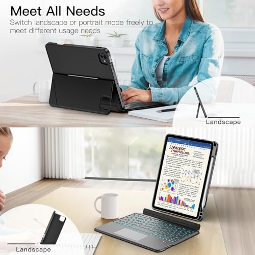 JUQITECH Touchpad Keyboard Case for iPad Pro 11 M4 2024, Magic Multi-Touch Trackpad Backlight Wireless Keyboard for iPad Pro 11-inch Magnetic Portrait Kickstand Smart Soft Case with Pencil Holder