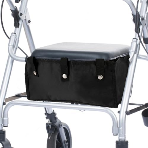 Rollator Basket Walker Under Seat Rollator Bag Black Walker Accessories Detachable Walker Organizer Storage Pouch Drive Walker Tray Reusable Rollator Accessories for Four Wheel Rollator