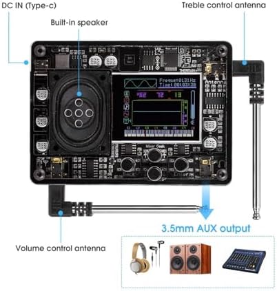 - Complete Accessories: Self contained speakers and plug in antennas, with antenna calibration function. In addition to connecting to sound devices such as headphones, you can also play sound through the independent speakers. When the sound device is connected, the external speakers will automatically turn off. The antenna can be unplugged, extended and retracted, which makes it more convenient for storage.