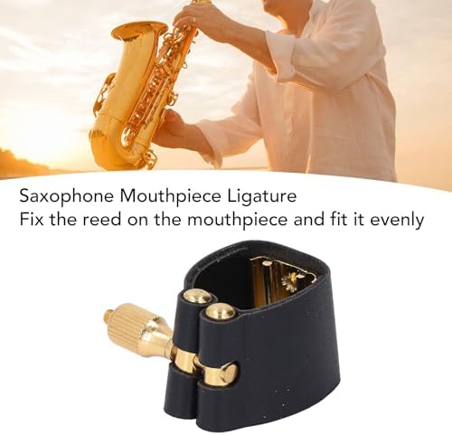 [Scratch With its glossy finish and careful craftsmanship, this saxophone mouthpiece fastener will not scratch the mouthpiece during use, providing peace of mind.[Enhanced Tone] Designed for various plastic mouthpieces for alto saxophone, this ligature fastener helps to enhance the overall timbre and tone of the instrument.[Premium Material] Crafted from leather, this ligature fastener offers excellent wear resistance, aging resistance, and durability for a long service life.[Portable Design] Featuring a compact and lightweight build, this alto sax mouthpiece fastener is easy to install and carry, making it convenient for on the musicians.[Fixed Position] This leather ligature securely holds the in place on the saxophone mouthpiece, ensuring an even fit for improved sound clarity and reduced stuffiness.Spec:Item Type: Saxophone Ligature FastenerMaterial: Leather, MetalApplication: For various alto saxophone plastic mouthpiecePackage List:1 x Saxophone Ligature Fastener