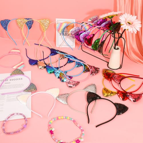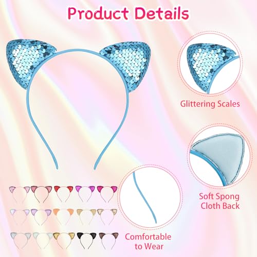 - Package contents: 25 pcs cat ears headband, you will get 25 different colors of sequin cat hairbands( 1 of each), can meet your different needs, beautiful and colorful cute headbands to match with multiple outfits and occasions