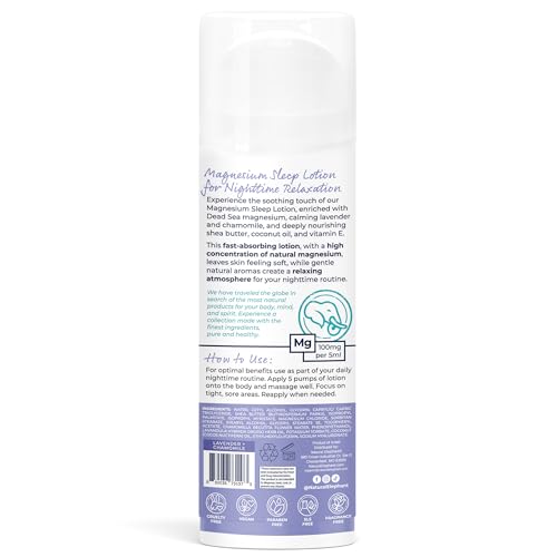 - Experience the ultimate nighttime relaxation with our Natural Elephant Dead Sea Magnesium Nighttime Body Lotion. Specially designed for bedtime, this luxurious lotion is infused with the calming scents of lavender and chamomile, known for their soothing properties. These natural botanicals help promote relaxation and create a calming atmosphere for a restful night's sleep.