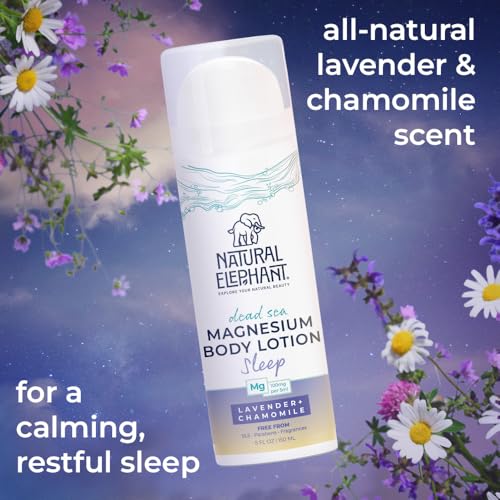 Natural Elephant Dead Sea Magnesium Lotion – Sleeptime Lavender Scented Body Moisturizer | Topical Magnesium with Dead Sea Minerals – 5 oz (150 ml)