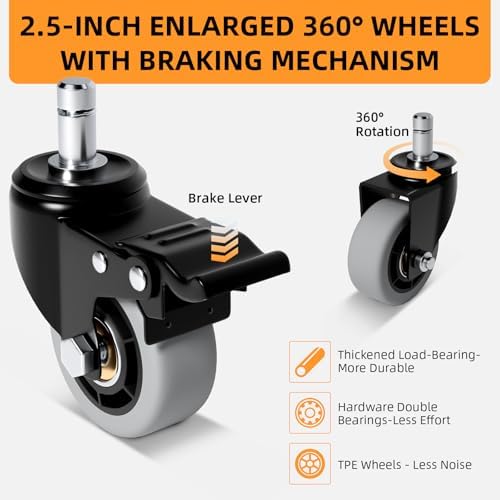 • ENLARGE WHEELS WITH BRAKES: Upgraded and enlarged 2.5 inch 360° wheels make the dolly better than 2 inch wheels in terms of weight bearing and passing during use. Noiseless and durable, this lightweight dolly with brakes ensure flexibility and stability
