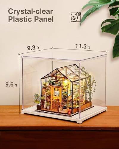 - 【Tamaño】La caja de exhibición de acrílico transparente puede acomodar artículos con un volumen máximo de 10.63×8.66×8.86 pulgadas (27×22×22.5cm), mientras que la cubierta de polvo mide 11.3×9.3×9.6 pulgadas (29×23.5×24.5cm). Es adecuada tanto para kits de casas en miniatura como para coleccionables de todos los tamaños.
