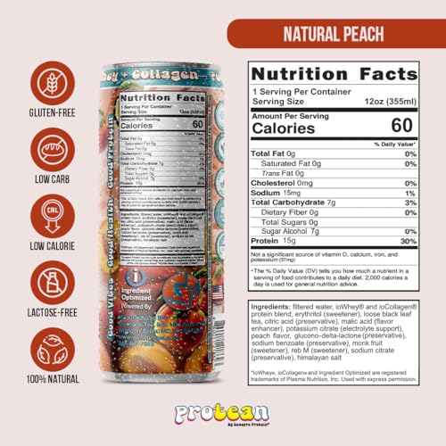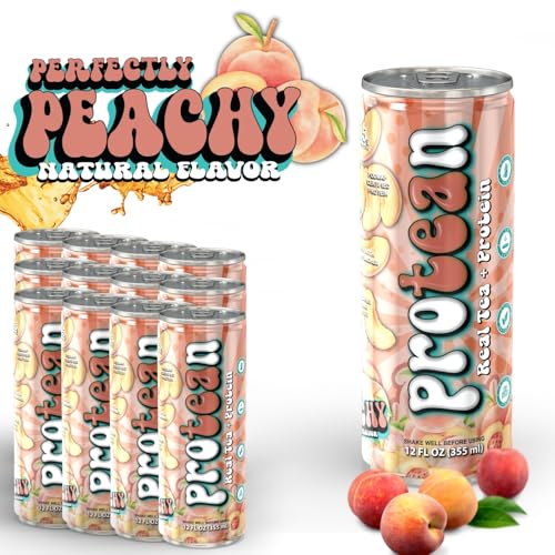 Protean Protein Tea – Perfectly Peachy | 12-Pack | ioWhey® Protein, Collagen-Enhanced, Zero Sugar, Real Tea | Ready-to-Drink, Lactose-Free, Gluten-Free, No Bloat
