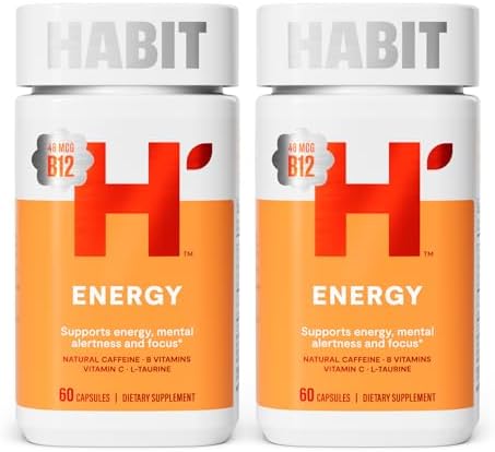 Habit Energy Supplement 2 Pack (120 Capsules) - New Look, Supports Energy, Mental Alertness and Focus, Natural Caffeine, Vitamins B & C, Green Tea Extract, Vegan, Non-GMO