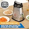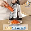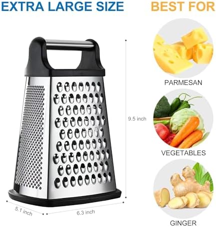 Professional Cheese Grater - Stainless Steel, XL Size, 4 Sides - Perfect Box Grater for Parmesan Cheese, Vegetables, Ginger - Dishwasher Safe - Black