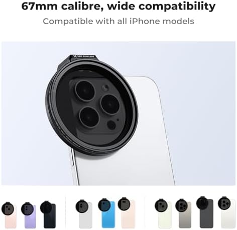 K&F Concept Clip On 67mm Variable ND2-32 Magnetic Phone Lens Filter Kit, Phone Clip with Magnetic Adapter Ring/Cold Shoe/Locking Knob, Neutral Density Filter for iPhone 16 15 Pro Max 14 13