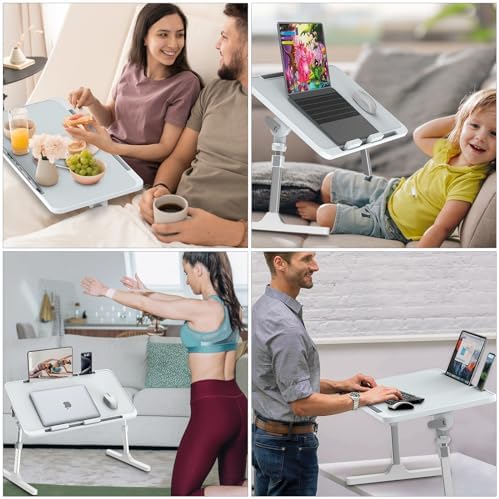Zapuno Laptop Bed Desk, Height & Angle Adjustable Laptop Bed Tray Table Lap Stand with Tablet & Phone Slot, Light Weight Foldable Portable Lap Desk for Couch Chair Floor Desk for Adults, Kids