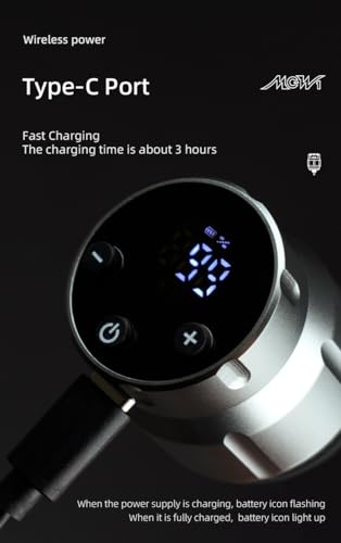 The MC-W1 Rechargeable Tattoo Machine Battery RCA CONNECTOR build inJump start mode and offers voltage outputs of 4V,5V6V, 7V, 8V, 9V, and 11V, 12V It charges via a DC5V/1A input using a TYPE-C port and has a 1500mAh battery. The device includes dual charge and discharge protection, with built-in over-surge protection and a control board that safeguards against short circuits, over-surges, and over-discharges. To operate, press the power button for 2 seconds to turn on the machine, and use the up/down buttons to adjust the voltage in a cycle from 4V to 12V. A 3-second press of the up/down button initiates a jump start. Upon activation, the machine quickly starts at 10V, then reverts to the last used voltage after 0.2 seconds. In sleep mode, the battery display appears 2 seconds after pressing the power button, with light indicators showing the remaining battery percentage (20%-100%). Press the power button again to resume voltage adjustment. During charging, the light indicator flashes and turns solid when charging is complete, entering "protection" mode. The battery, with a capacity of 1500mAh, charges fully in approximately 3 hours, providing up to 8 hours of work time at voltages below 8V. Designed primarily for rotary tattoo machines, the MC-W1 should not be used with coil machines and does not support simultaneous charging and operation. In case of short-circuit protection, simply plug the device into the charger to reactivate it.