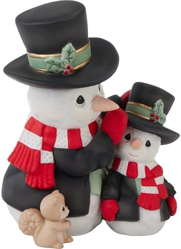 The holidays have a way of bringing families even closer as traditions are celebrated and new memories are made. A chip off the old ice block, this young snow-son is proud to look just like Dad. The 15th figurine introduction in the Annual Snowman Series features the jolly pair along with an adorable squirrel friend. Made of glittering snow and dressed to the nines in top hats and dress coats, this father and son duo brings a special kind of warmth to holiday decor as the dad straightens the little one’s hat. Give this sparkling figurine as a thoughtful holiday gift to friends, family, coworkers, or anyone who enjoys decorating with snowmen. Consider giving this figurine as a secret Santa gift, hostess gift, or housewarming present as well. Measuring approximately 5.5”H, this figurine is carefully crafted of fine bisque porcelain and is expertly hand-painted. For more than 40 years, Precious Moments has been devoted to making the world a kinder place by helping people share the gift of love. A timeless brand, Precious Moments helps you celebrate everyday moments and commemorate special occasions with hand-painted porcelain figurines and ornaments as well as contemporary kitchenware, home décor, baby gifts, and more. A unique inspirational message lies at the heart of every Precious Moments product, thoughtfully designed so you can turn your special moments into memories that last a lifetime.
