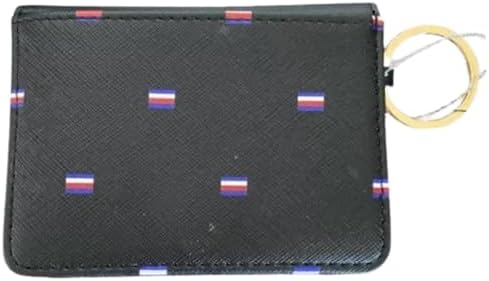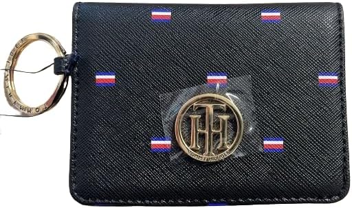 Tommy Hilfiger Wallet Card Holder Key Ring Real Leather Black with Logo, Black/White, Tarjetero, Casual