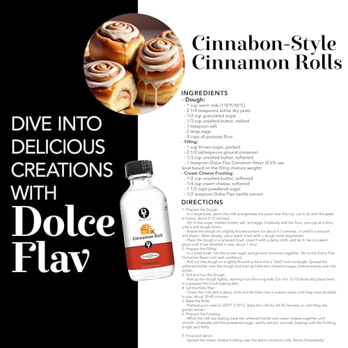 • Adaptive Cinnabon Flavoring: Our Cinnabon concentrate is a culinary essential for creating homemade cinnamon rolls, baked goods, and more. Mix it into your desserts, from cinnamon-infused treats to creative baking explorations, bestowing them with the bold, warm taste of cinnamon.