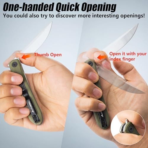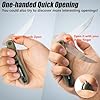 - Innovative Quick Open: With its innovative front-flipper design, this knife allows for swift one-handed opening, providing quick access to the blade.Beginners can start with two hands to master the mechanism and gradually transition to one-handed operation